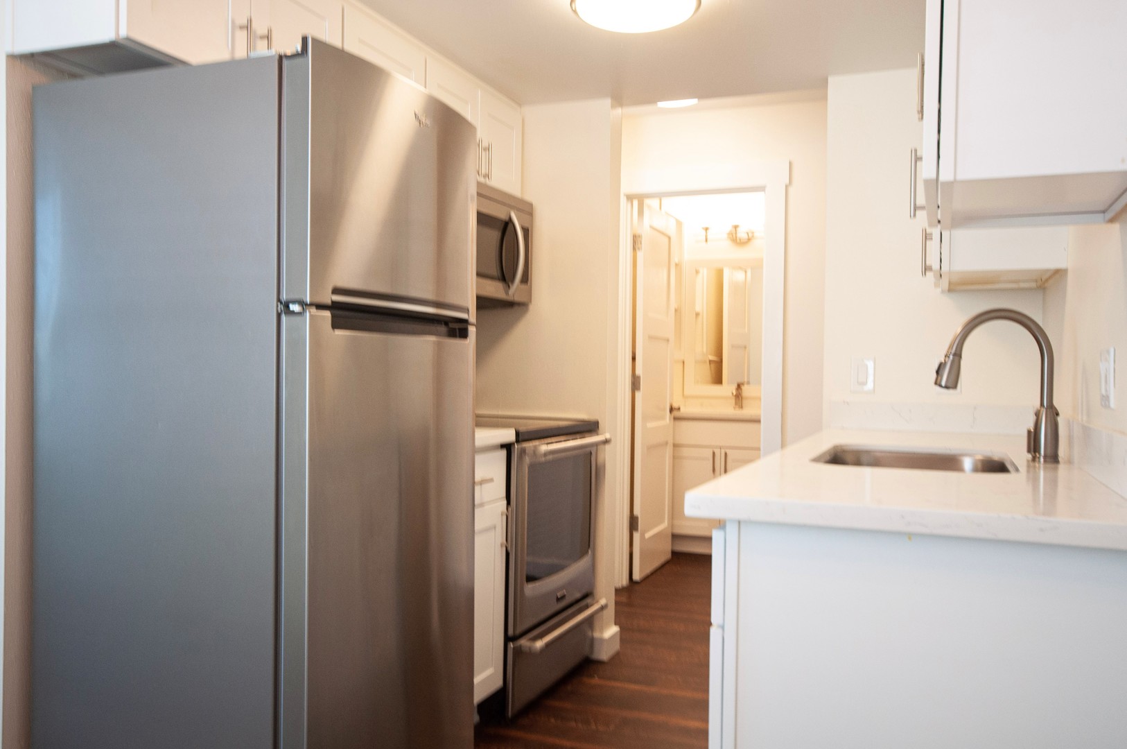 Step into luxury and comfort with this meticulously crafted one-bedroom, one-bath corner unit, conveniently situated on the first floor. With hardwood floors adorning every inch and brand new cabinets paired with stunning quartz countertops, this home exudes elegance at every turn.
