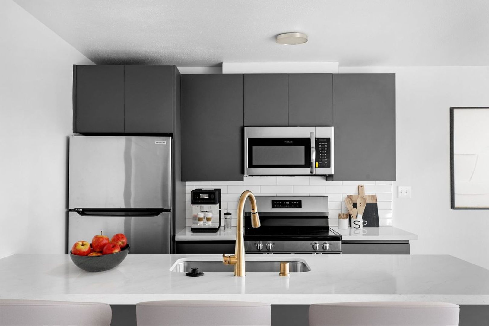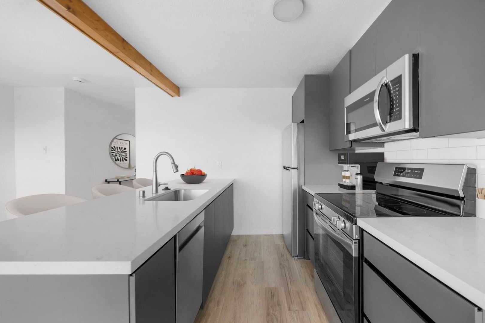 Brand-new stainless steel appliances and quartz countertops